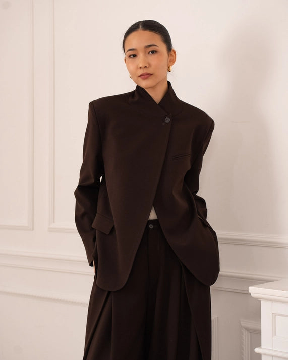 Veste blazer à la coupe moderne, dotée d’un bouton décoratif sur le côté du col qui apporte une touche originale et raffinée. Facile à porter, elle structure la silhouette tout en restant élégante, idéale aussi bien pour un look habillé que plus décontracté.