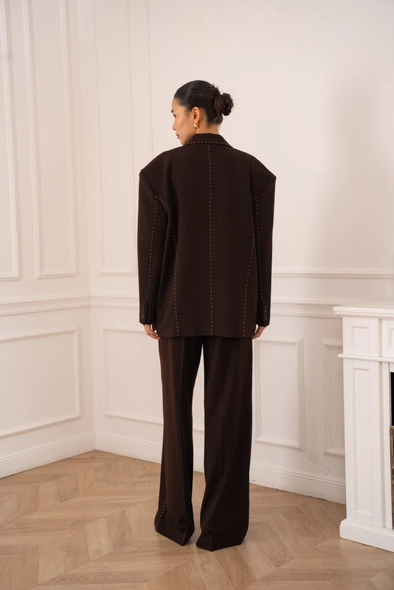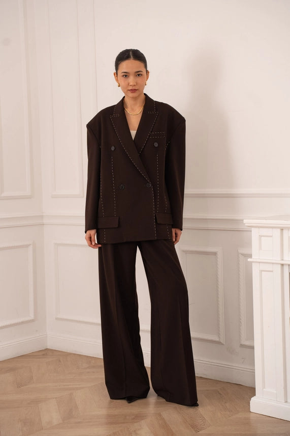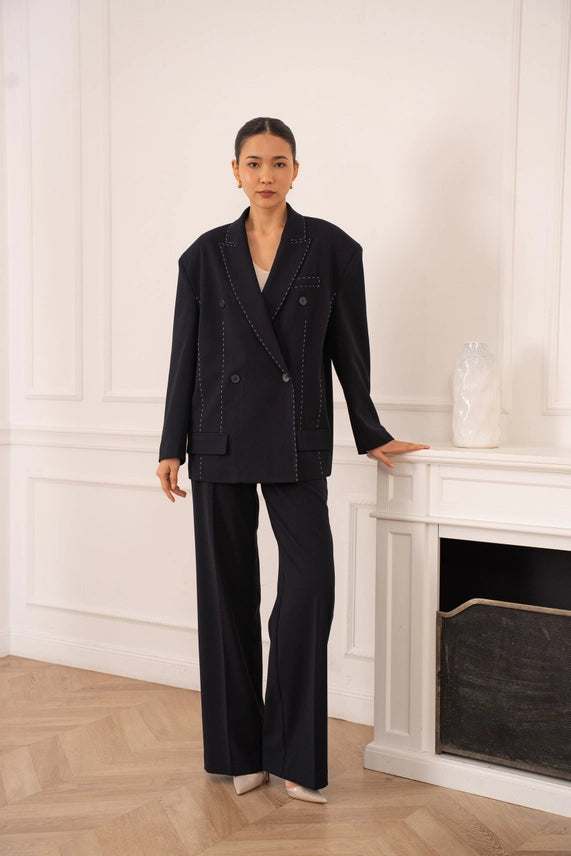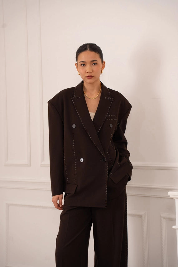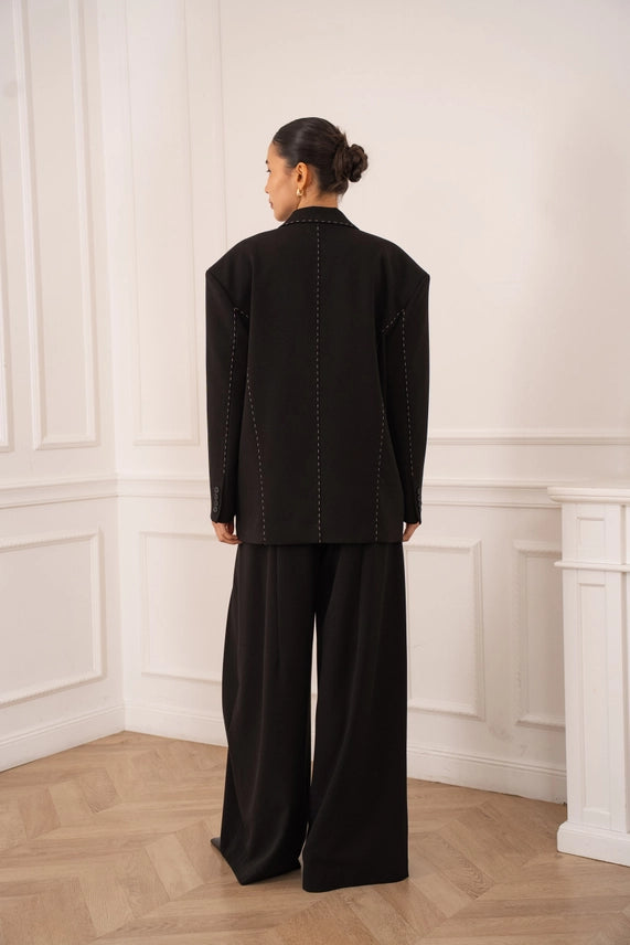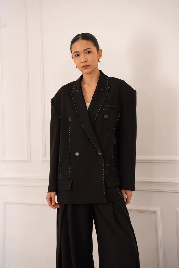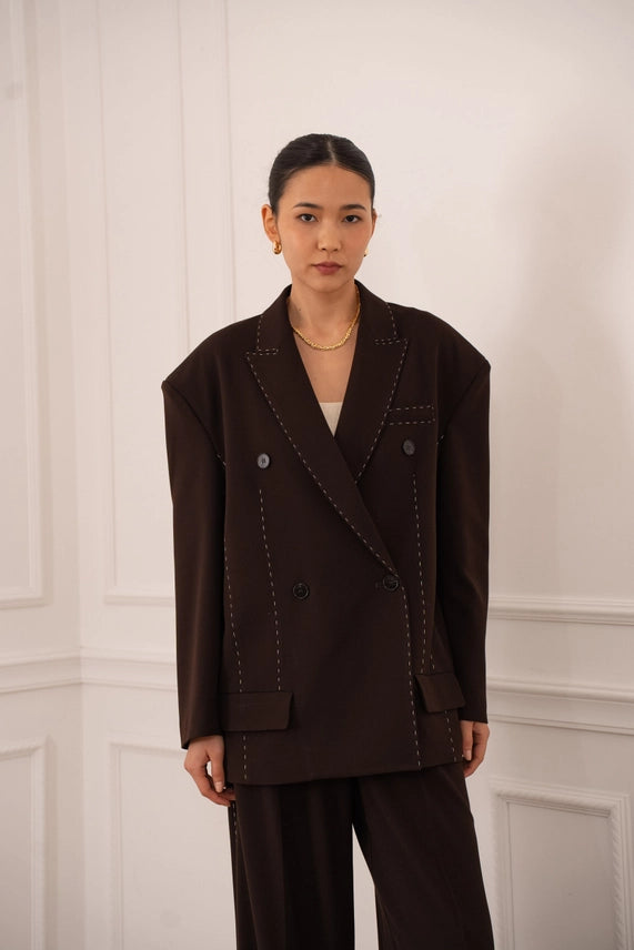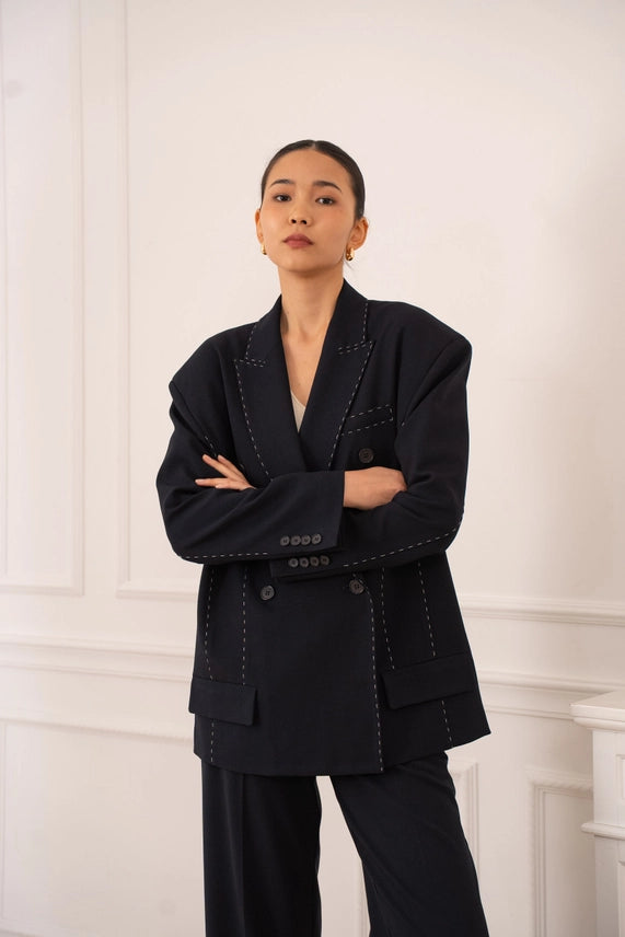 Blazer à la coupe structurée, rehaussé de surpiqûres apparentes qui apportent du caractère et une finition soignée. Son design moderne en fait une pièce facile à porter, idéale pour structurer une tenue tout en restant élégante et actuelle.